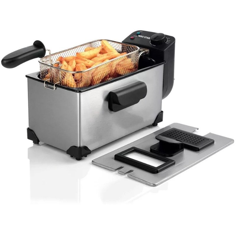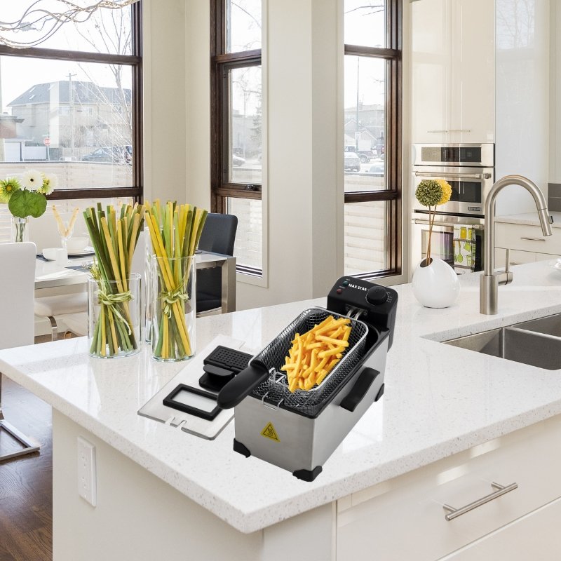 Su capacidad de 3 litros de aceite permite cocinar hasta 1 kg de alimentos, lo que resulta perfecto para reuniones de amigos o familiares. Fríe rápidamente crujientes patatas, aros de cebolla, pollo, croquetas o platos dulces como roscas o churres.