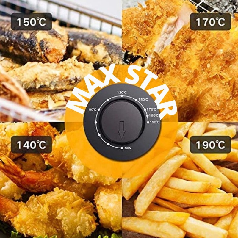 Sus 2200 W de potencia te permitirán obtener resultados rápidos y excelentes. La temperatura puede regularse hasta 190 ºC para adaptarse a las necesidades de los diferentes alimentos.