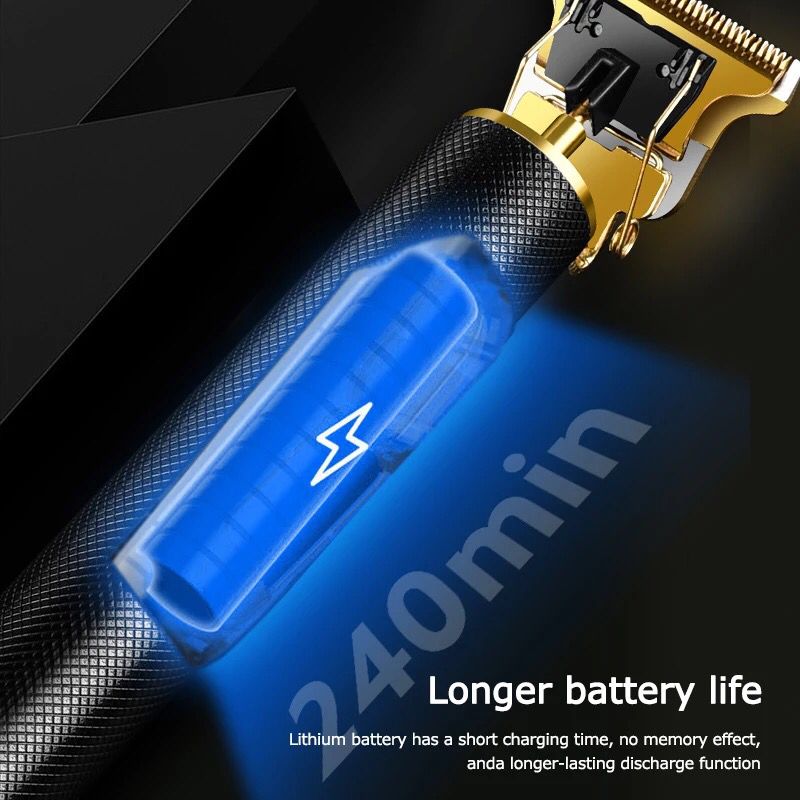 Tecnología de grabado profesional, parte superior gruesa parte inferior delgada del cuerpo del dispositivo es fácil de sujetar y usar, facilitando los cortes de cabello. Un botón para encender y apagar instantáneamente en la parte inferior del fuselaje, tiene un potente motor de 5W.